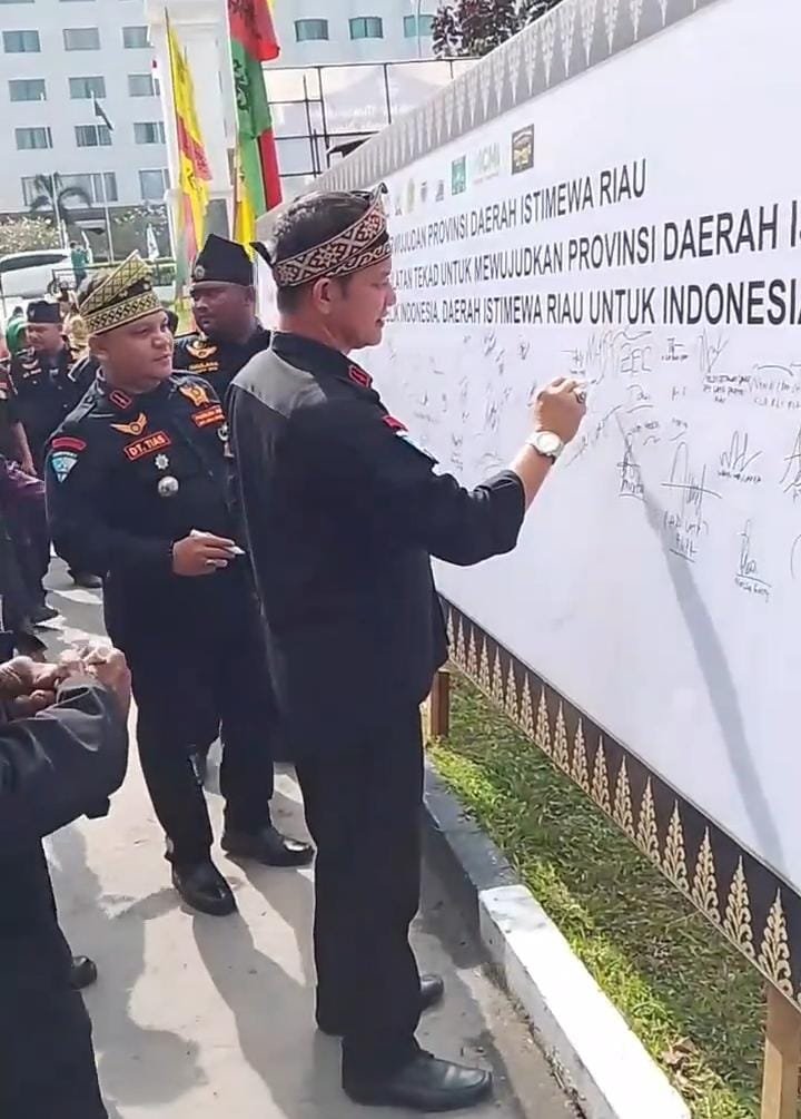 mirandapos.com || Riau, – Jum’at 17 Oktober 2025 ,Ribuan masyarakat Riau dan tokoh-tokoh ternama dari berbagai organisasi masyarakat (Ormas) berkumpul di Balai LAMR Provinsi Riau JL Diponegoro, untuk menghadiri acara Maklumat Daerah Istimewa Riau (DIR). Acara ini juga dihadiri oleh Panglima Utama Laskar Melayu Bijuangsa Nusantara (LMBN) Datuk Besar Muhammad Uzer dan Jajaran yang mewakili seluruh Anggota LMB Nusantara.