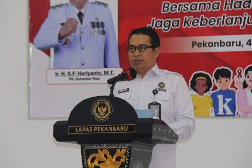 Plt Gubernur Riau, yang diwakili oleh Plt Kepala Dinas Kesehatan Provinsi Riau, Heri Permana, menyampaikan bahwa momentum Hari AIDS Sedunia menjadi pengingat pentingnya upaya bersama dalam mengurangi stigma, meningkatkan edukasi, dan memastikan setiap warga—termasuk warga binaan—memperoleh layanan kesehatan yang setara. “Deteksi dini melalui skrining sangat penting agar penanganan dapat dilakukan lebih cepat dan tepat. Kegiatan ini sekaligus menjadi langkah nyata memperkuat upaya pencegahan HIV di wilayah Riau,” ujarnya.