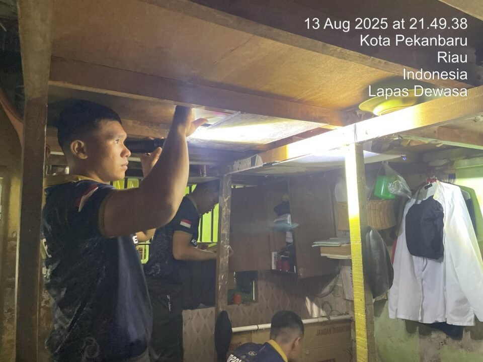 mirandapos.com, Pekanbaru – Dalam rangka menjaga lingkungan Lembaga Pemasyarakatan (Lapas) Kelas IIA Pekanbaru tetap aman dan kondusif, serta mencegah terjadinya gangguan keamanan dan ketertiban (kamtib), Lapas Kelas IIA Pekanbaru kembali menggelar razia kamar hunian warga binaan. Ini merupakan bentuk komitmen melaksanakan Arahan 13 (tiga belas) Program Akselerasi Menteri Imigrasi dan Pemasyarakatan khususnya pada poin 1 (satu) yakni Memberantas Peredaran Narkoba dan Pelaku Penipuan dengan berbagai modus, Rabu (13/08).