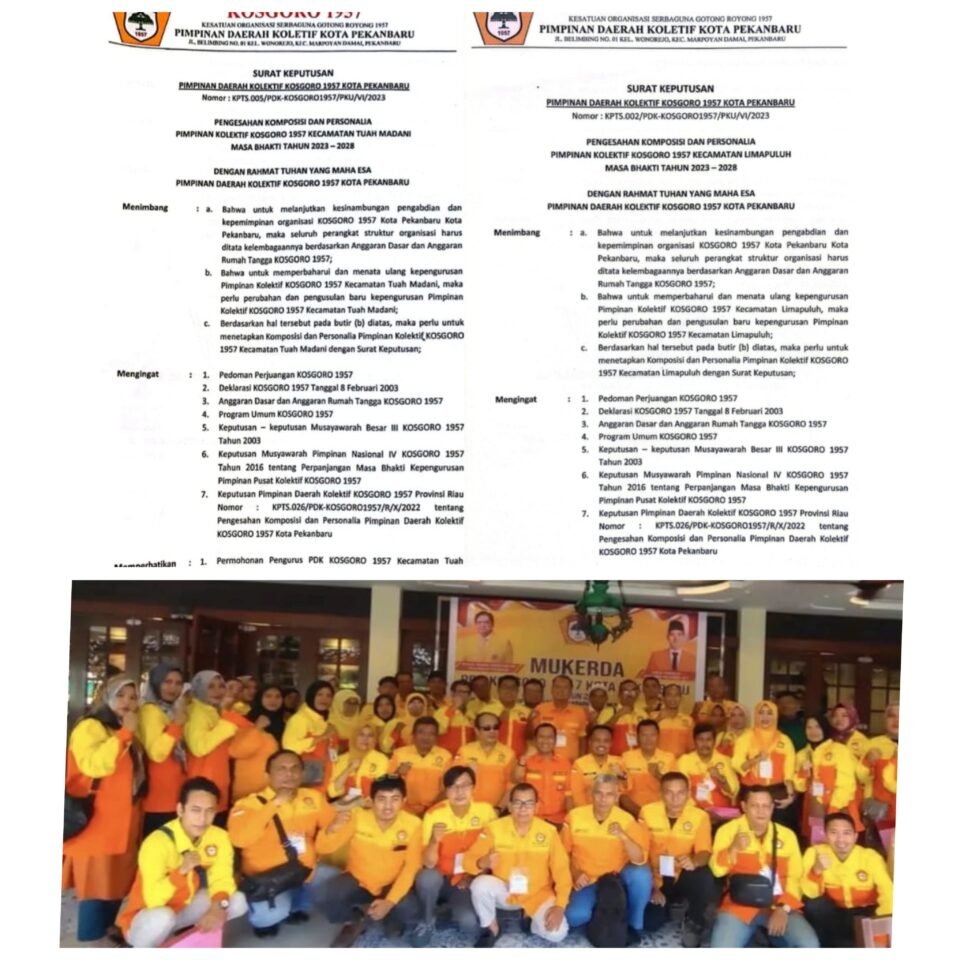 mirandapos.com, PEKANBARU – Kesatuan Organisasi Serbaguna Gotong royong (Kosgoro 1957) Kota Pekanbaru dan Pimpinan Kolektif (PK) Kecamatan termasuk Organisasi Masyarakat yang sah dan di akui keberadaannya di Kota Pekanbaru.