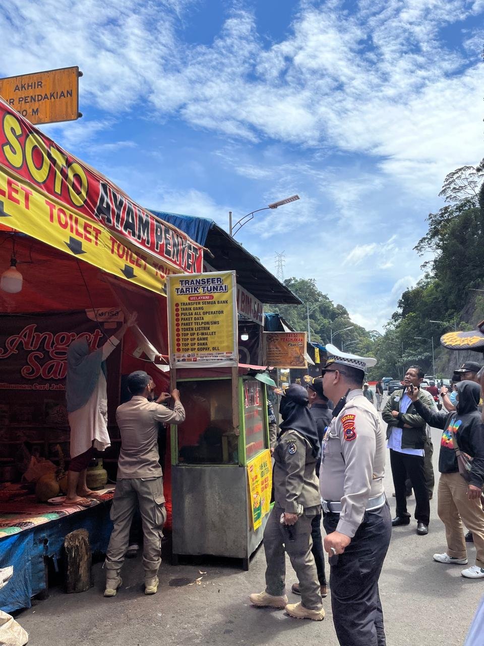 mirandapos.com, Sumbar – Tim gabungan menertibkan aktivitas pedagang kaki lima dan parkir liar yang menggunakan badan jalan di kawasan Fly over Kelok 9, Nagari Ulu Aia, Kecamatan Harau Kabupaten Lima Puluh Kota, Sabtu (7/6/25).